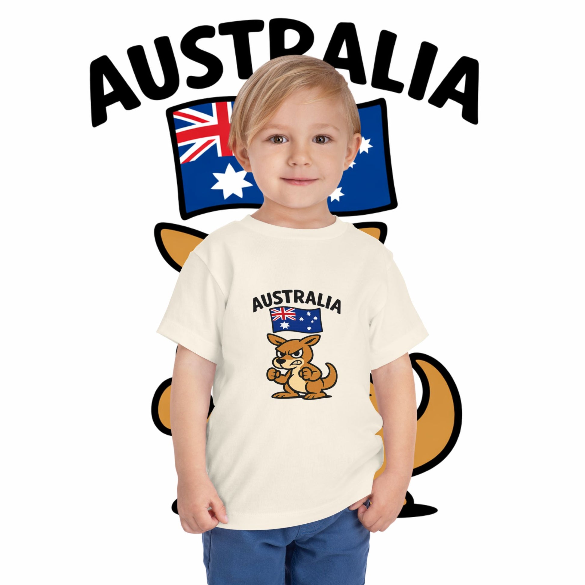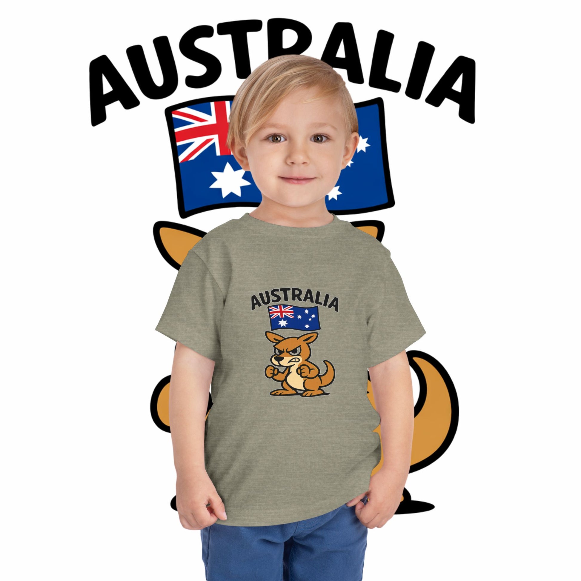 Sunlit afternoons at the park, tiny feet kicking up dust, and a cheeky little kangaroo keeping watch — this toddler tee brings a playful slice of Australia to everyday adventures. The soft, lightweight fabric drapes gently on small frames so kids can run, climb, and nap without fuss. The bold, friendly kangaroo artwork and crisp flag motif add a touch of down-under pride that parents love and children respond to with grins. It’s casual, comfortable, and made to move with them during backyard explorations, family outings, or quiet story time indoors.